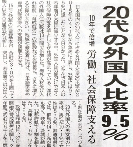 20歳代の外国人比率が9.5%と