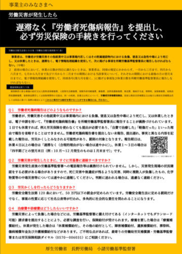 内容は、労災発生時の